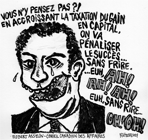 Toute mesure accroissant l'imposition du capital devient l'occasion pour ses riches bénéficiaires de normaliser leur programme politique et l'ériger en parole raisonnable. Ainsi M. Asselin présente-t-il la hausse de l'impôt sur le capital comme une manière de « pénaliser le succès » et de « décourager l'investissement », en plus de menacer le financement des programmes sociaux par un ralentissement de l'économie. Plutôt que de ponctionner les plus riches pour augmenter les revenus étatiques, M. Asselin suggère dans une lettre ouverte publiée dans le Toronto Star de regarder du côté des dépenses de l'État, aux prises avec une « dépendance envers la dépense ». L'austérité devient dès lors la voie raisonnable à emprunter, puisqu'on écarte de facto la solution consistant à accroître les revenus, ne serait-ce qu'en s'assurant que tous et toutes paient leur juste part d'impôts.
