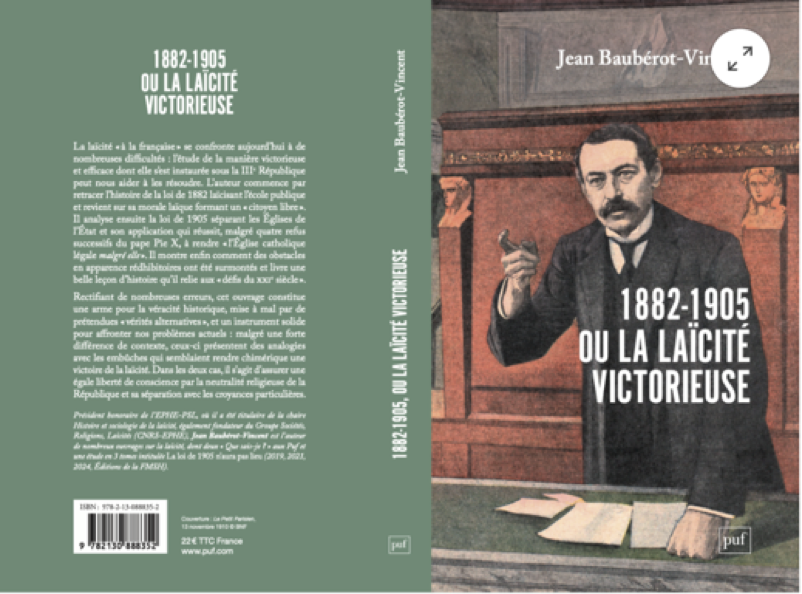 Depuis bien quarante ans, je laboure (en bon petit-fils de paysan) le champ de l'histoire et du présent de la laïcité. Le moment est venu pour moi de m'atteler à un autre champ d'études et c'est ce que je fais actuellement. J'ai voulu, cependant, clore mon travail par un ouvrage de synthèse destiné à ce que l'on appelle le « grand public cultivé », notamment les enseignant.e.s, les militant.e.s associatifs et toutes celles et tous ceux qui se posent des questions sur la laïcité, son passé et son devenir. Je me suis rendu compte que si certains livres portaient sur la création de l'école laïque et quelques autres sur la loi de séparation, aucun d'eux ne liait ensemble ces deux événements[1], ne montrait leur cohérence profonde et, à fortiori, ne les situait dans la perspective des défis que la laïcité affronte aujourd'hui.