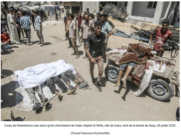 Les frappes israéliennes ont causé d'importants dégâts dans des quartiers résidentiels et près d'un millier d'Iraniens auraient été tués. Mais malgré les menaces de Benyamin Nétanyahou, Khamenei n'a pas été assassiné, et Washington n'a pas réduit l'Iran en cendres. Ce qui n'a pas empêché Trump, lors de la visite du premier ministre israélien à la Maison Blanche le 6 juillet, de comparer son action à l'utilisation de l'arme atomique par le président Harry Truman à Hiroshima (« elle a évité beaucoup de combats inutiles, et mon action a aussi évité beaucoup de combats inutiles ». (2) Pendant ce temps, à Gaza, famine et massacres continuaient de plus belle, mais tant qu'Israël et l'Iran étaient en guerre, les souffrances des Palestiniens ne faisaient plus la une.