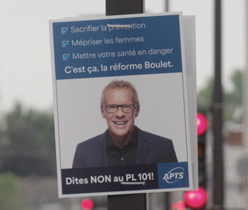 La création du régime québécois de santé et de sécurité du travail en 1979 avait introduit des mécanismes de prévention et de participation obligatoires, réservés aux milieux jugés plus à risque, comme ceux de la construction et de l'industrie, alors majoritairement masculins. Le réseau de la santé et des services sociaux, pourtant à haut risque, en était exclu. Après plus de 40 ans de mobilisation, la réforme de 2021 (Loi modernisant le régime de santé et de sécurité du travail) visait à rendre ces mécanismes obligatoires pour tous les milieux de travail. Aujourd'hui, le ministre Boulet tente d'en priver le réseau de la santé et des services sociaux. Disons NON au PL 101 !