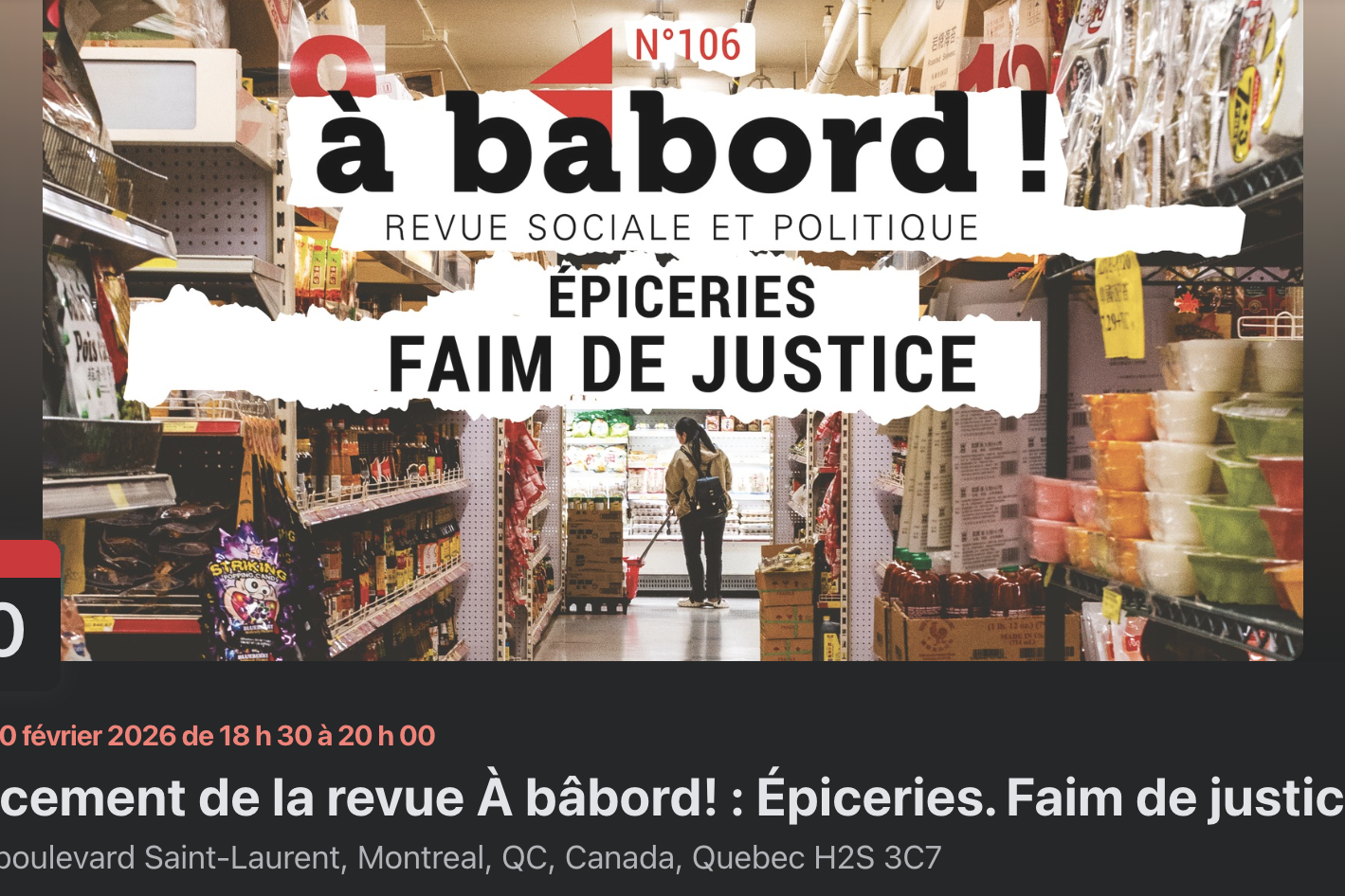 Le collectif de la revue À bâbord ! vous invite au lancement de son numéro 106 et du dossier « Épiceries. Faim de justice ».