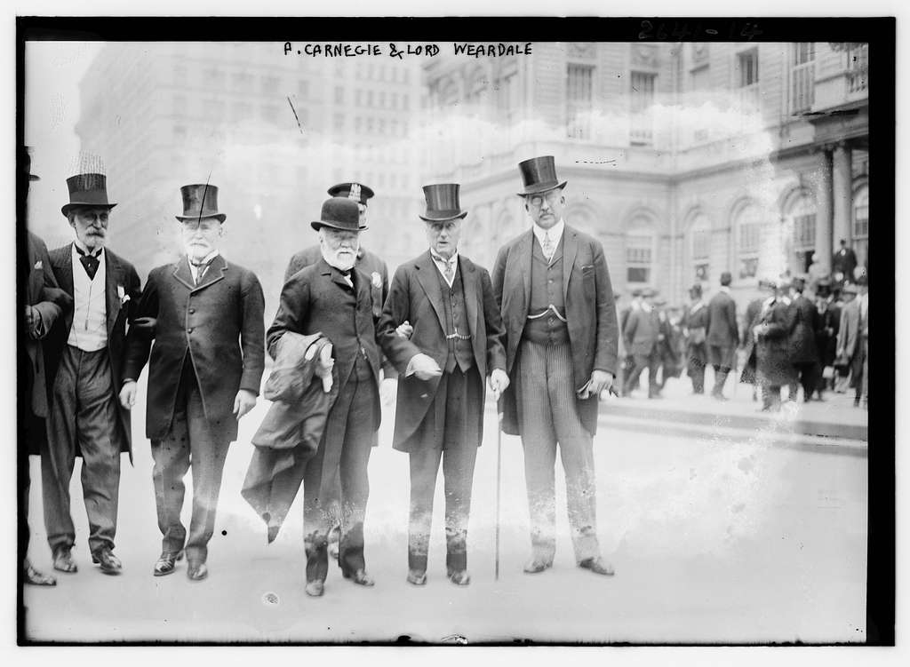 Photo : Andrew Carnegie (1835-1919) et Philip James Stanhope, mai 1913. (Source : Flickr Commons project, 2009, domaine public)