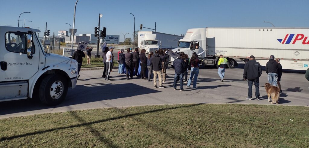 Des postiers et leurs alliés bloquent un entrepôt de Purolator