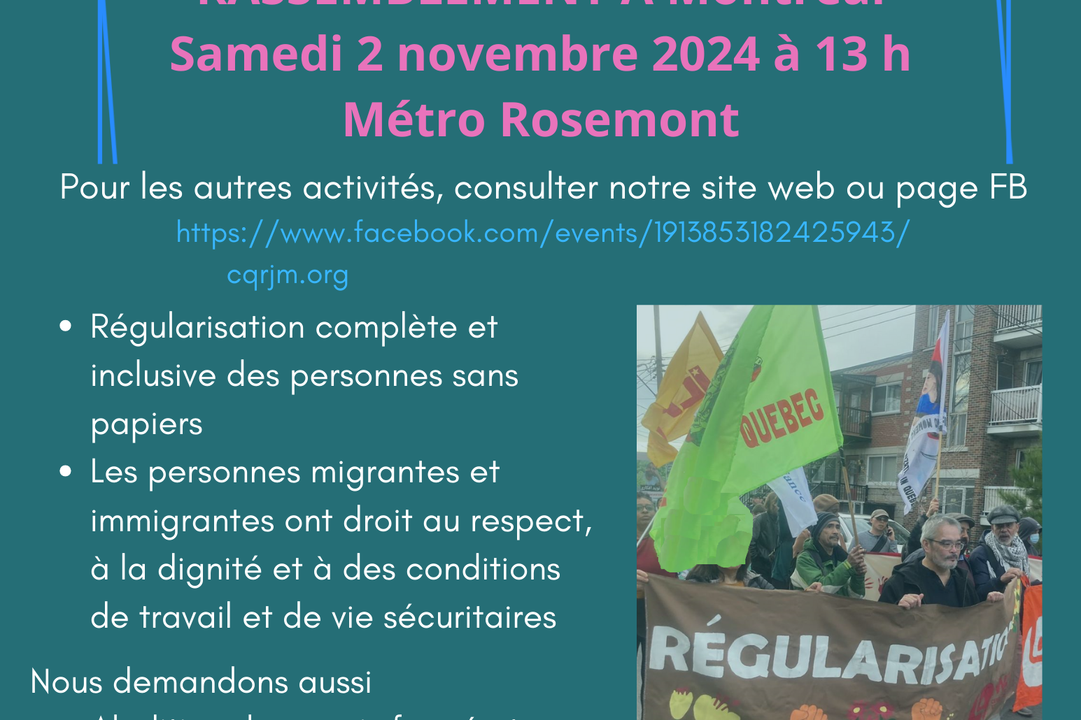 Montréal, le 7 novembre 2025. À l'occasion d'un mois d'action en faveur de la justice migrante du 4 au 28 novembre à travers le Québec, les organisations engagées dans la Campagne québécoise pour la régularisation et la justice migrante (CQRJM) et ses allié·es dénoncent les attaques répétées contre les droits des personnes im·migrantes et enquête d'asile. Elles s'alarment d'un recul historique en matière de justice et de solidarité à l'issue de la publication du Plan d'immigration du Québec 2026, qui prévoit une baisse des seuils d'immigration. Ce scénario nous rend incapables de remplir nos obligations internationales en matière de protection des réfugié·es et de regroupementfamilial, en plus de pousser dans la précarité un nombre croissant des travailleuses et travailleurs migrant·es actuellement au Québec.