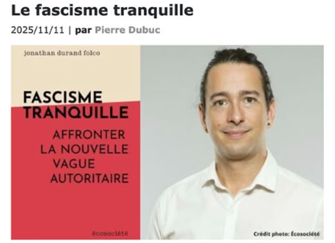 3 décembre 2025 | Dernier texte sur Métapolitiques : Critique du fascisme tranquille