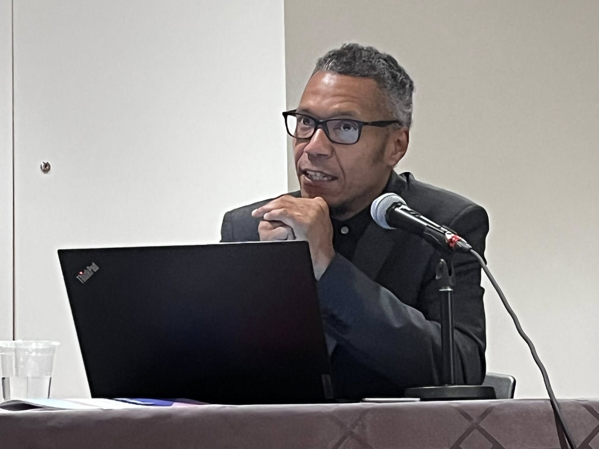 Photo : Benoit Larocque, coordonnateur du ROCL devant plus de 200 personnes issues des organismes communautaires autonomes membres de notre regroupement régional.