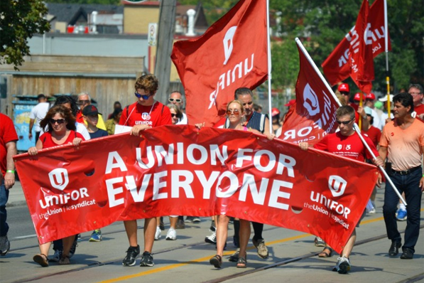12 août 2025 | tiré de Canadian dimension | Photo : Des membres d'Unifor défilent lors de la parade de la Fête du travail à Toronto. Photo : Mary Crandall.