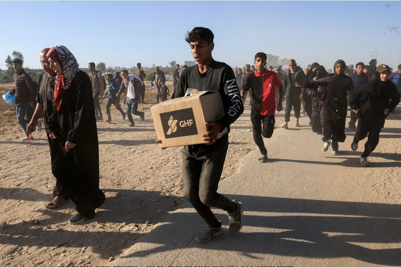 En tant que « puissance occupante » – selon le droit international – le gouvernement israélien aurait l'obligation, comme l'affirme l'OCHA, d'assurer « l'entrée de quantités beaucoup plus importantes de fournitures essentielles par plusieurs points de passage et itinéraires ». Or, le gouvernement israélien privatise et militarise une prétendue aide humanitaire, prenant appui sur la structure fantoche Gaza Humanitarian Foundation qui fait appel à des mercenaires et est appuyée par l'armée israélienne.