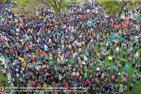 Le lendemain, le 18 octobre, nous avons marché aux côtés de plus de 16 000 femmes à travers le Québec dans le cadre de la MARCHE MONDIALE DES FEMMES.