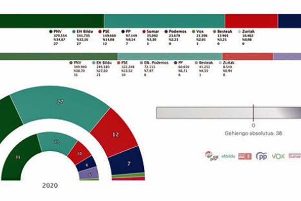 Ainsi, bien que le PNV ait perdu 3,83% des voix et 4 sièges par rapport aux élections de 2020, l'augmentation de 0,56% et de 2 sièges du PSE, permet à la coalition PNV-PSE d'atteindre la majorité absolue dans le futur parlement (39 sièges sur 75) et de continuer à gouverner.
