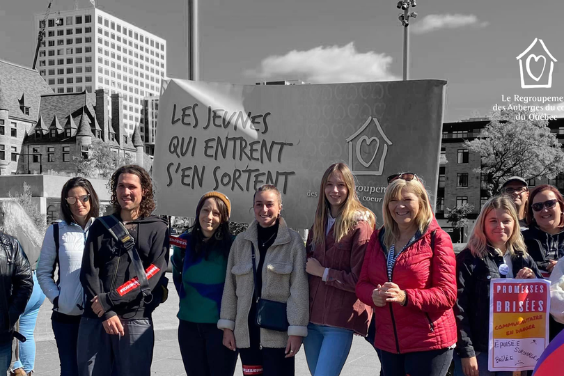 MONTRÉAL, le 18 novembre 2025 – À l'approche de la mise à jour économique du gouvernement Legault et à l'invitation de la Coalition Main rouge, le Regroupement des Auberges du cœur du Québec (RACQ) s'est rassemblé devant les bureaux montréalais du Premier ministre du Québec pour dénoncer les conséquences des compressions budgétaires et des politiques d'austérité menées par la CAQ.